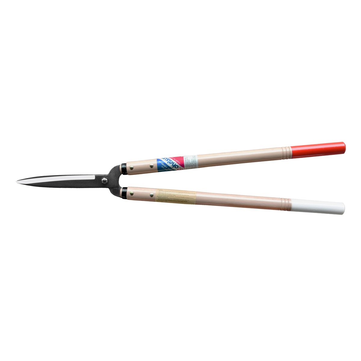 Nůžky jsou vybaveny 50 cm dlouhými dřevěnými rukojeťmi, které poskytují výborný pákový efekt při střihu. Čepele o délce 175 mm jsou naostřeny ve dvou úhlech, což zajišťuje hladký, čistý a tichý střih s minimální námahou. S hmotností 1 kg jsou navíc nůžky velmi lehké a dobře vyvážené, což oceníte zejména při delším používání.